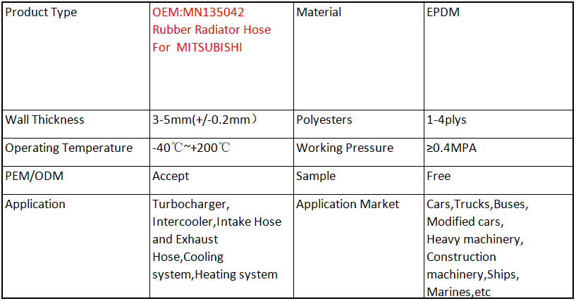 EPDM radiator hoses are made of flexible and durable rubber material. They can withstand high temperatures and pressures generated by the engine. These hoses are designed to carry hot coolant from the engine to the radiator and cooler coolant back to the engine. They may also be wrapped with cloth for added protection. Regular inspection is important to detect any signs of wear such as cracks, bulges, or leaks. Damaged hoses must be replaced promptly to prevent coolant leakage and engine damage.