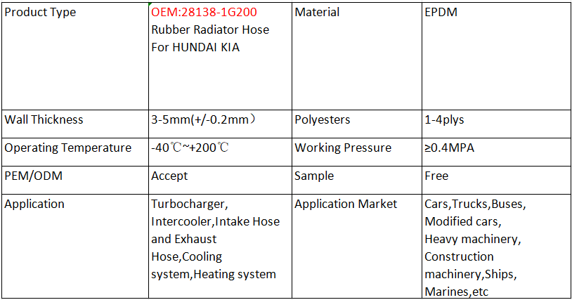 EPDM radiator hoses are made of flexible and durable rubber material. They can withstand high temperatures and pressures generated by the engine. These hoses are designed to carry hot coolant from the engine to the radiator and cooler coolant back to the engine. They may also be wrapped with cloth for added protection. Regular inspection is important to detect any signs of wear such as cracks, bulges, or leaks. Damaged hoses must be replaced promptly to prevent coolant leakage and engine damage.
